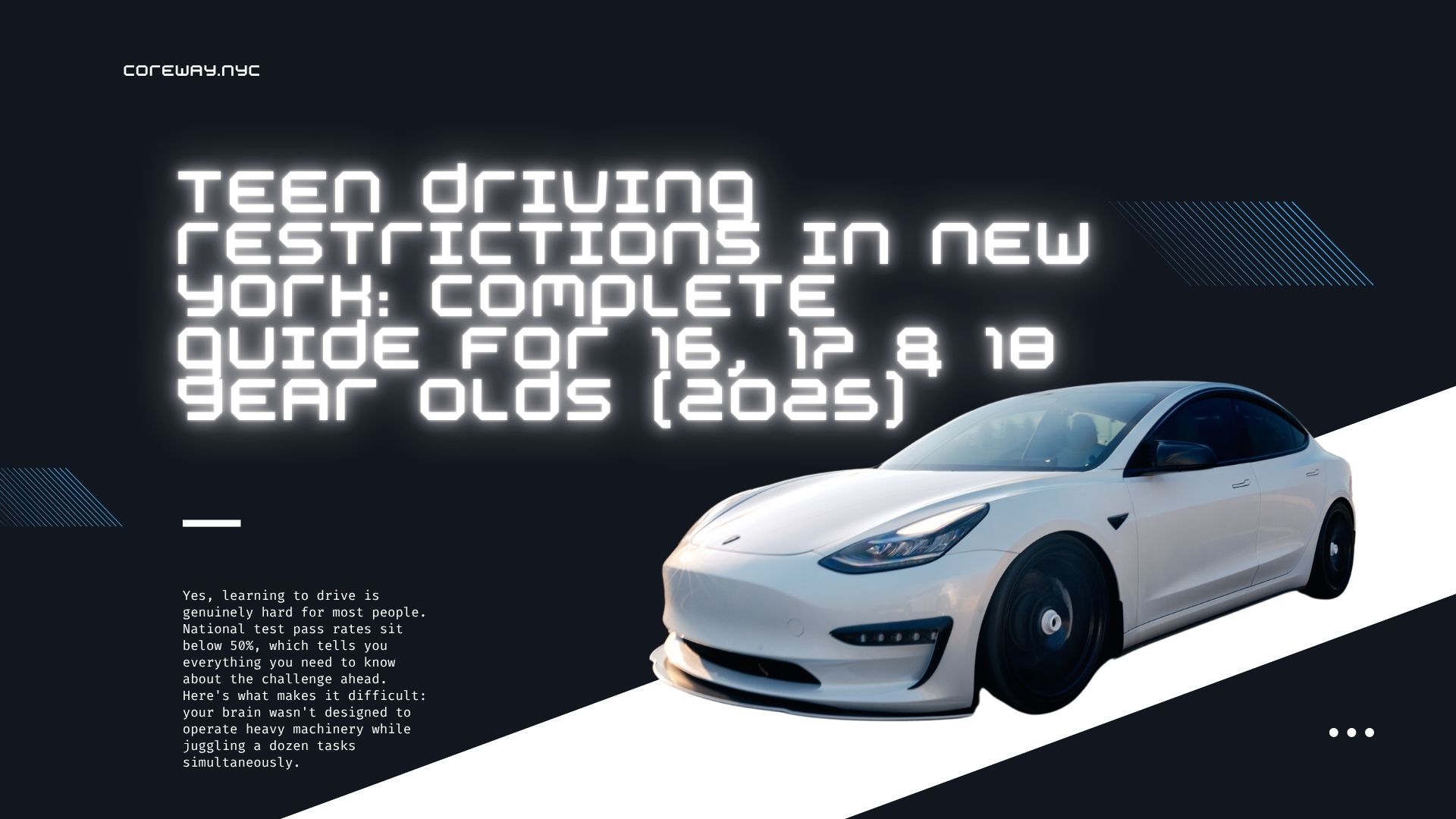 Teen Driving Restrictions in New York: Complete Guide for 16, 17 & 18 Year Olds (2025)Yes, learning to drive is genuinely hard for most people. National test pass rates sit below 50%, which tells you everything you need to know about the challenge ahead. Here's what makes it difficult: your brain wasn't designed to operate heavy machinery while juggling a dozen tasks simultaneously.
